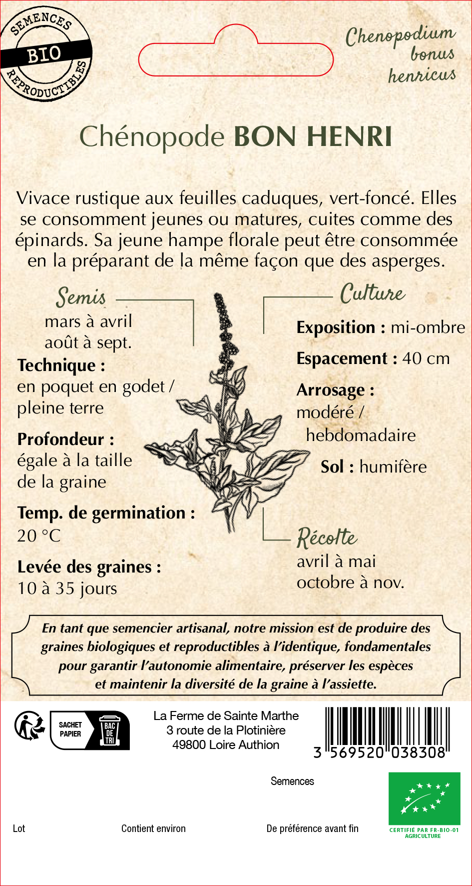 Le chénopode bon-henri est une plante vivace très robuste, parfaite pour les jardiniers en quête de légumes feuilles originaux et savoureux. Ses feuilles vert foncé, sagittées et charnues offrent une texture agréable et un goût délicat rappelant l'épinard.