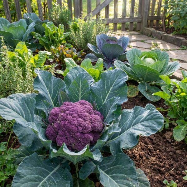 Le Chou Fleur Violet de Sicile est une variété tardive exceptionnelle, idéale pour les jardiniers souhaitant récolter en automne et en hiver. Cette variété méditerranéenne produit une magnifique pomme bien dense, de couleur brun violacé à maturité, offrant un rendu aussi esthétique que savoureux.