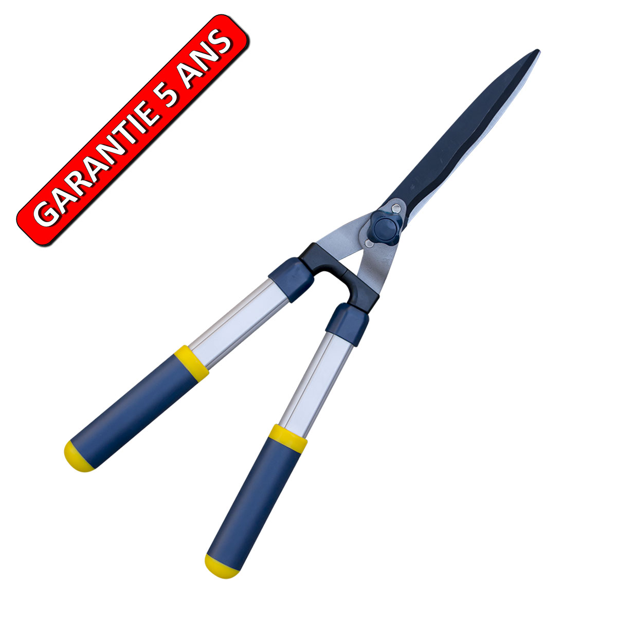 Cisaille à haie manche aluminium idéale pour tailler et égaliser vos haies et buissons. Dotée d’une lame 23 cm en acier trempé et d’un manche léger (1,04 kg) avec poignées ergonomiques, elle garantit une coupe précise. Fabrication française et garantie 5 ans.