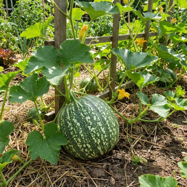 La COURGE de Siam est une variété coureuse remarquable, caractérisée par une forte végétation et un vigoureux développement. Son feuillage duveteux et volumineux crée une belle couverture du sol, idéal pour les jardins spacieux.