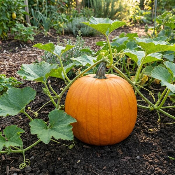 Courge coureuse Jack O’Lantern produisant 2 à 5 fruits de 18 à 20 cm. Chair orange clair épaisse, idéale pour potages et confitures. Variété généreuse et savoureuse.
