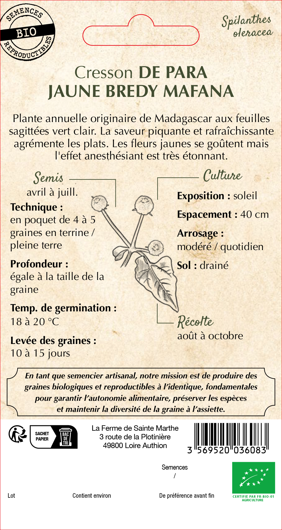 Le cresson de para jaune est une plante annuelle et condimentaire d'origine malgache qui ravira les jardiniers en quête de saveurs originales. Facile à cultiver, cette variété Bredy Mafana se distingue par ses feuilles sagittées d'un vert clair étonnant, délectables tant crues que cuites.