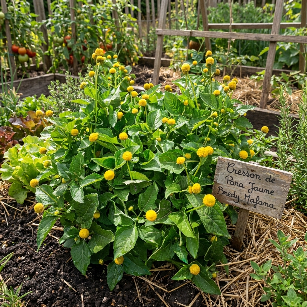 Découvrez le cresson de para jaune Bredy Mafana, plante annuelle malgache aux feuilles savoureuses et fleurs jaunes comestibles. Goût piquant et rafraîchissant garanti.
