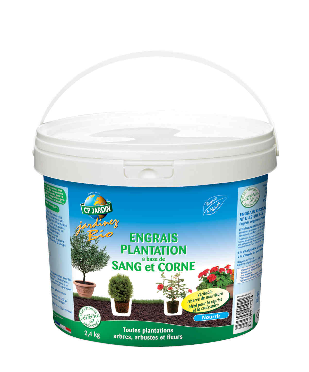 Engrais naturel à base de sang et corne torréfiée. Réserve nutritive complète pour la reprise et la croissance des plantations.