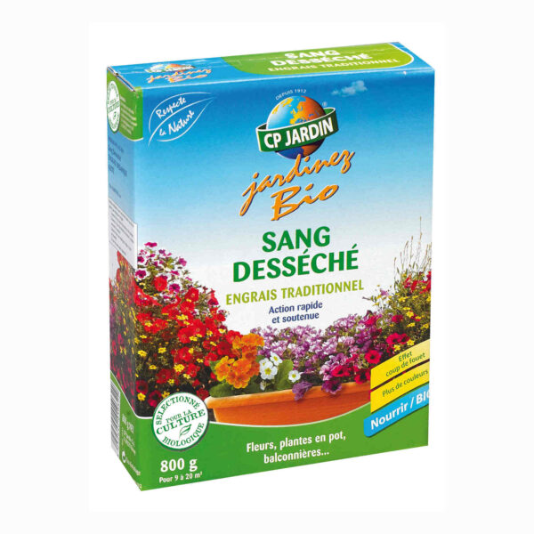 Sang desséché 800 g, engrais organique riche en azote (N12%). Action rapide pour potager, fleurs et plantations. Utilisable en agriculture biologique.