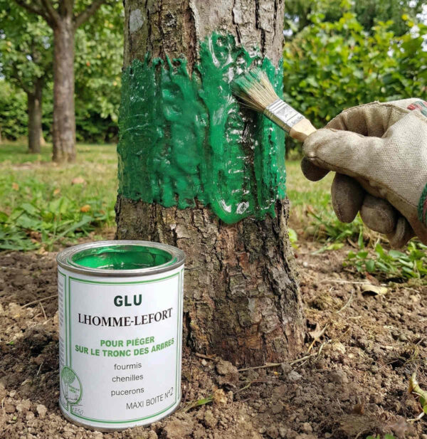 Glu arboricole naturelle pour piéger fourmis, chenilles et pucerons sur le tronc des arbres. Protection efficace au printemps, en été et à l’automne.