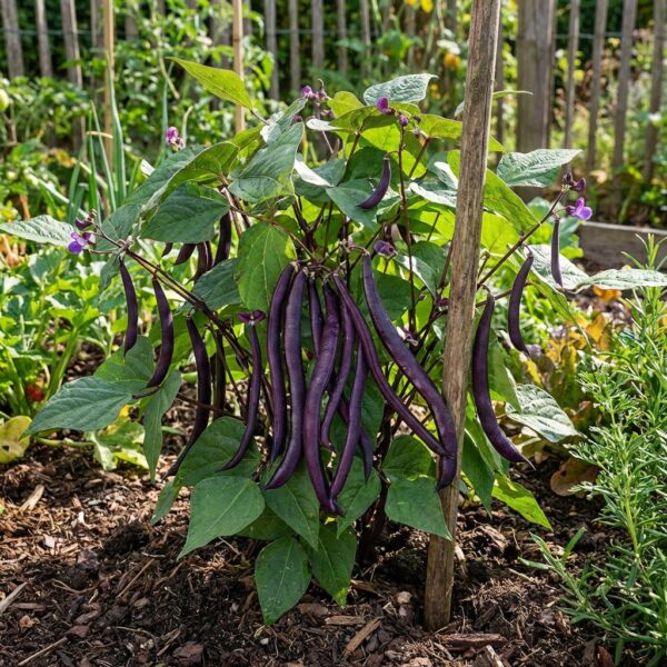 HARICOT NAIN Purple Queen : variété mangetout naine hautement productive. Gousses violettes foncées sans fil, texture tendre et goût beurré délicieux. Facile à récolter et à cultiver. Env. 350 graines.