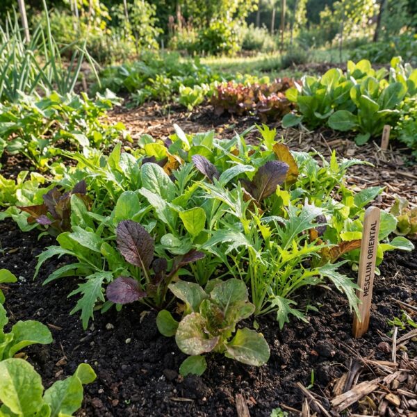 Récoltez vos jeunes pousses en feuilles à feuilles ou coupez l'ensemble de la rosette pour des salades généreuses et nutritives. Ce mélange apporte couleur, texture et saveur à vos assiettes quotidiennes.