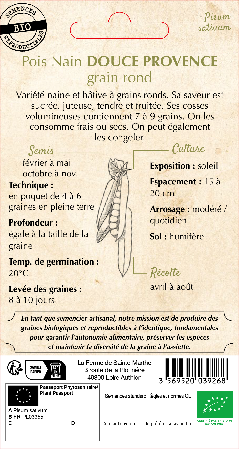 Choisissez le POIS NAIN Douce Provence grain rond BIO pour des récoltes savoureuses et une culture facile au potager.