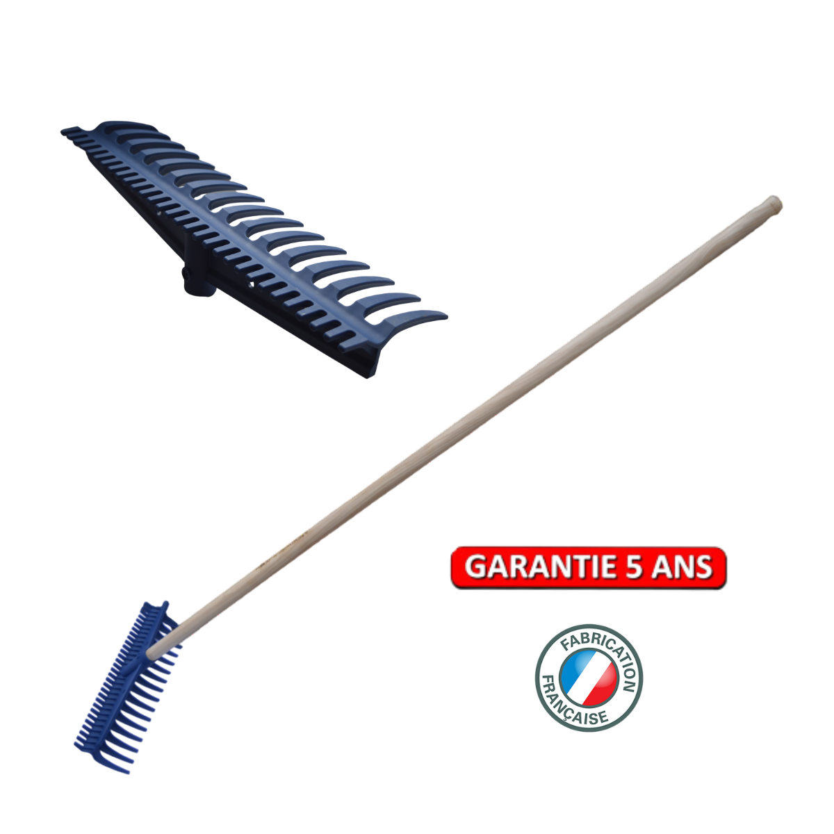 Fabriqué en France, ce râteau bénéficie d'une finition en peinture hydrosoluble non polluante, respectueuse de votre santé et de celle de la planète. Le nylon renforcé fibre de verre garantit une résistance exceptionnelle et une longévité remarquable. Bénéficiez d'une garantie 5 ans, témoignage de la qualité de fabrication française.