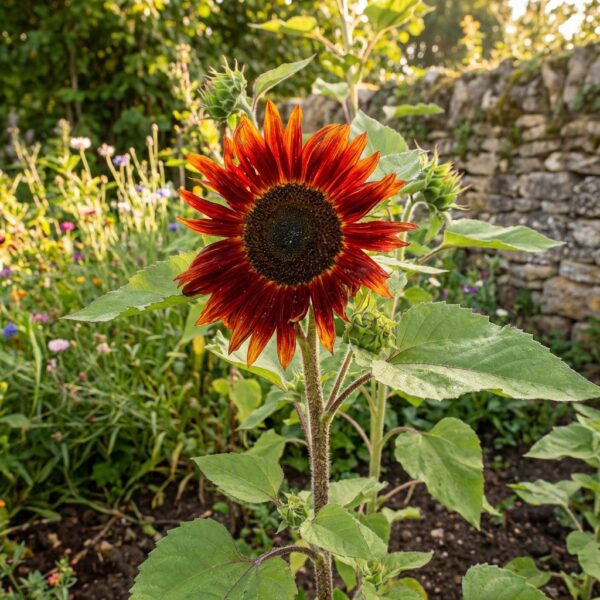 Le tournesol rouge se distingue par sa hauteur impressionnante, atteignant entre 1,5 et 1,8 mètres. Ses fleurs de taille moyenne aux teintes chaudes créent une ambiance estivale inoubliable dans tout jardin. Cette variété rustique s'adapte parfaitement aux conditions climatiques tempérées et convient aussi bien aux jardins traditionnels qu'aux espaces urbains.