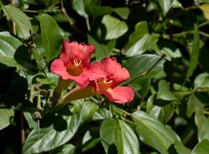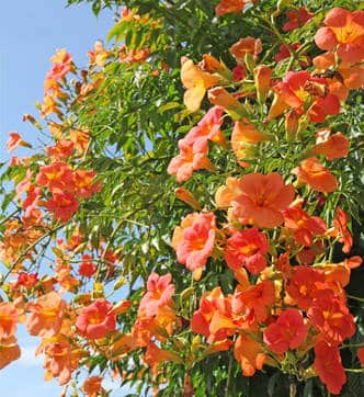 La bignone que l’on appelle Jasmin de Virginie est une grimpante de toute beauté qui fleurit tout l’été. Plante grimpante caduque, elle est appréciée pour ses grandes fleurs en trompettes aux teintes chaudes : orange, rouge, jaune. Sa floraison estivale, très ornementale, attire les regards tout autant que les insectes pollinisateurs.