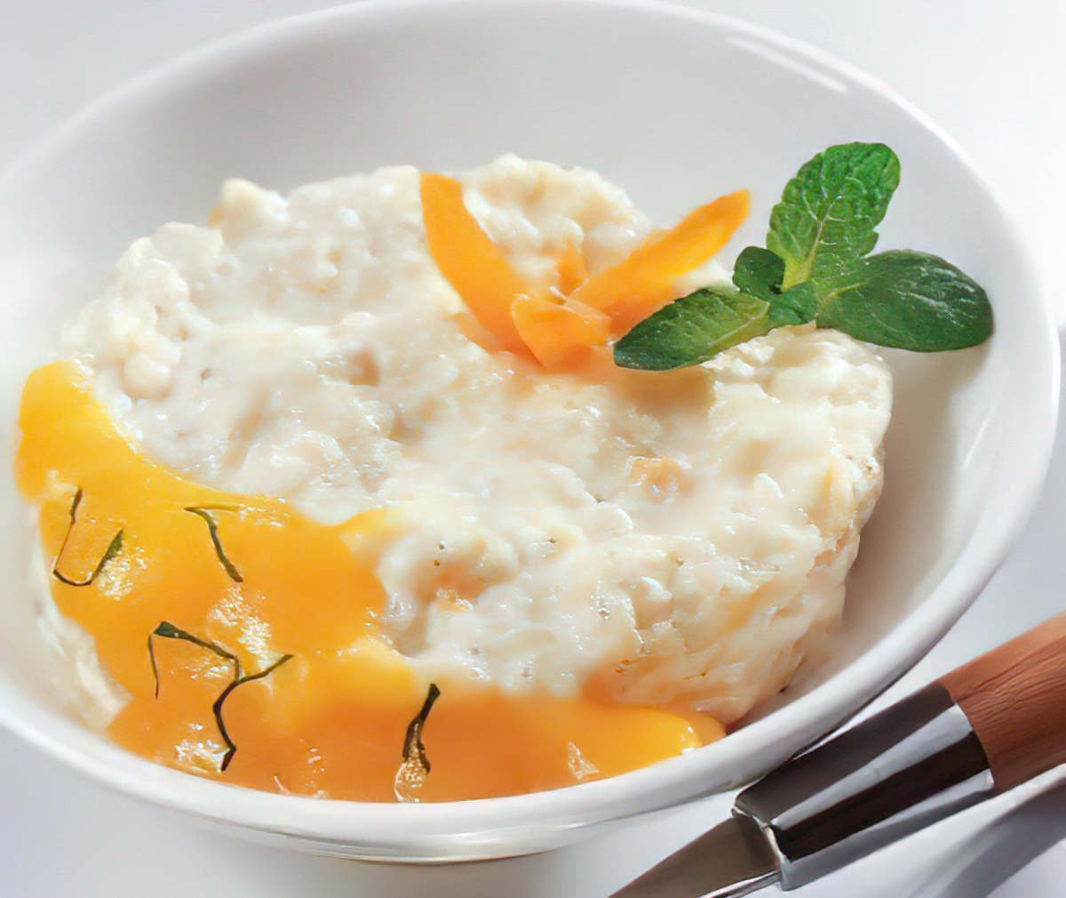 Un dessert réconfortant où la douceur du gâteau de riz se marie à l’intensité fruitée d’un coulis d’abricots secs maison.