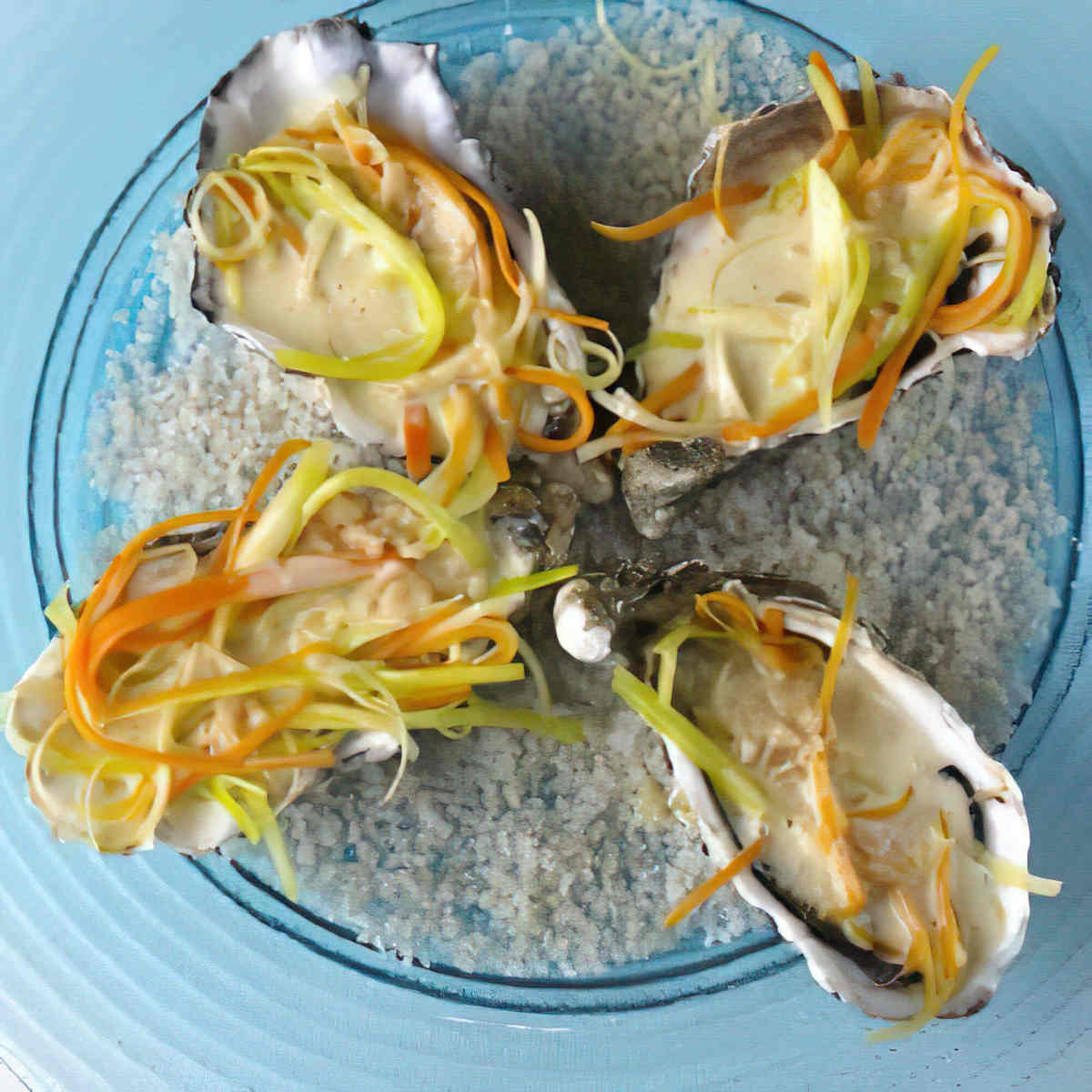 En entrée ou en guise de plat léger, cette recette d’huîtres chaude, julienne de légumes et beurre blanc est un régal.